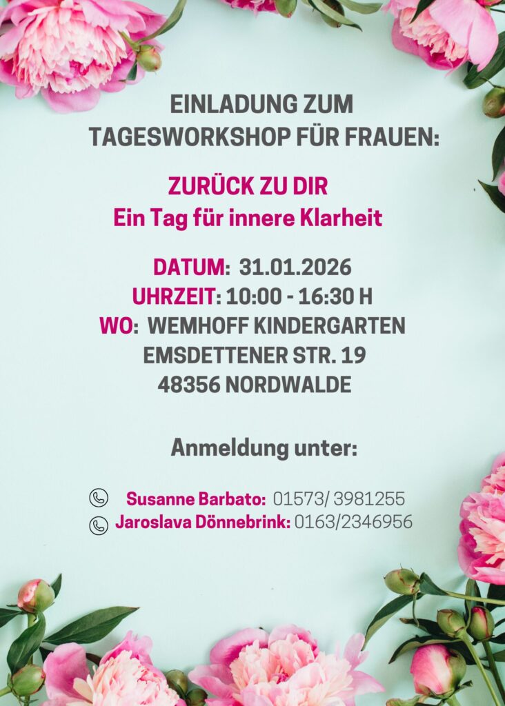 Dieser Tagesworkshop ist eine Einladung, dir bewusst Zeit für dich selbst zu nehmen ✨ innezuhalten, deine Gedanken zu ordnen und wieder bei dir anzukommen 🤍 In einer ruhigen, wertschätzenden Atmosphäre darfst du dich neu ausrichten und eine klare innere Orientierung für dein Jahr 2026 entwickeln 🌿